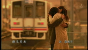 南大江駅5 2006.02.022023.06.12 残念ながらいいタイミングで電車は来てくれませんでした。 2人の抱擁のキスシーン。よかったですね・・・。 鉄道と駅って情景をドラマティックに見せてくれます。